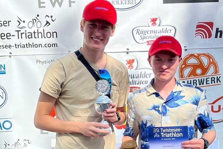 Bad Arolsen/Twistesee Ebenfalls noch eine gute Form bewiesen die zum Regionalliga-Aufsteigerteam zählenden Tom Borst (2005) und Thorben Emil Such (2006). Beim bestens besuchten und organisierten Twistesee-Triathlon am 10.09. in Nordhessen ging es noch einmal über die Sprintdistanz (0,5-20-5km). Tom wiederholte seinen Sieg und verbesserte die persönliche Streckenbestzeit aus dem Vorjahr um fast 70 Sekunden auf 1:02,22 h. Dabei gelangen ihm in allen Teildisziplinen die Tagesbestzeiten. So kann eine Saison mal beendet werden. Thorben stand seinem Teamkameraden in nichts nach. Als zweiter ging er auf die Radstrecke und konnte die Führung im Wettbewerb der A-Jugend (Jahrgänge 06/07) bis ins Ziel deutlich halten. Ergebnisse: https://twistesee-triathlon-2023.racepedia.de/ergebnisse