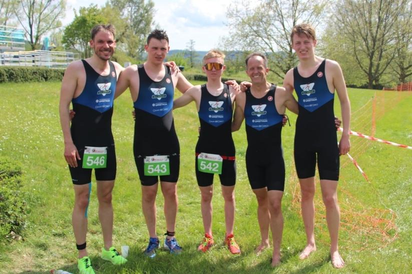 Den Renntag beendete das Limbacher 1a-Team mit einem Swim-Bike-Run:Repeat (2*400mSwim, 10kmBike, 2,5kmRun). In der Regionalliga-Mitte (Hessen, Saarland, Rheinland-Pfalz) tritt das Team nach dem letztjährigen Aufstieg erstmals an. Ziel: Klassenerhalt. Das zeigten die „Mannen“ um Kapitän Simon Krause auch deutlich. Leider musste man Ausfälle kompensieren. Limbach-Urgestein, Teamkapitän und -organisator Moritz Spitz fehlte berufsbedingt, Neuzugang Oskar Weber verletzt. Mit Thorben Such rückte ein ganz junger und noch recht rennunerfahrener Athlet nach und fast-Oldie Marius Holl meldete aus der 5. Liga „hoch“. Das Team zeigte sich unbeeindruckt, agierte taktisch clever und konnte Trainingsrückstände und Blessuren überwinden oder kurzzeitig vergessen machen. Mit Platz 7 konnten erste wichtige Punkte für den Klassenerhalt gesammelt werden. Wohl wissend, dass in den nächsten Rennen Moritz Spitz und auch der Kaderathlet Soma Bárdi (wird extra vom Bundesstützpunkt in Potsdam anreisen, um dem Team wertvolle Stütze zu sein) die Limbach/Elz-Crew deutlich verstärken können. Zu sehen bereits am 28.5. beim Fritzlarer Ederauentriathlon. Ein Einzelrennen über die Sprintdistanz: 0,75-20-5 Km.