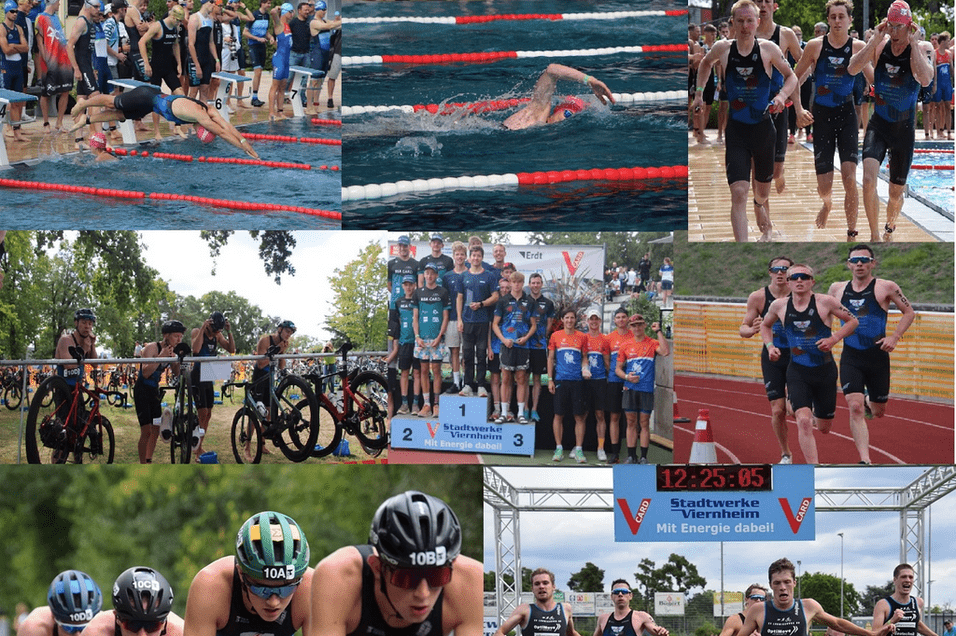 Viernheim Beim letzten Rennen der 2. Triathlonbundesliga-Süd ging es im Teamsprint mit vorgeschaltetem Staffelschwimmen noch zwischen fünf Teams um die Besetzung der Podiumsplätze. In den Nachwuchsrennen wurden die hessischen Landestitel vergeben. Sonntags noch das Rennen der Seniorenliga mit dem SG-ü40-Team.