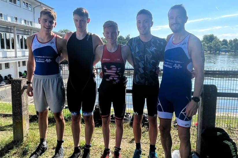 In Nordhessen begann der Triathlontag bereits um 8:50 Uhr bei kühlen Temperaturen. Im Einzelstart ging es über 500m im Freibad, 21km hügelige Radkilometer und 5 flache Laufkilometer um wichtige Punkte im Ligaranking. Mit einer soliden Teamperformance reichte es für die SG Limbach/Elz am Ende zum siebten Platz der Tageswertung. Besonders Simon Krause mit Einzelrang Neun zeigte eine sehr gute Leistung. Tom Borst (Platz 19), Jan Lucas Ferschke (Platz 37), Günther Rothmayer (Platz 45) und Marvin Müller (Platz 46) komplettierten das Team.