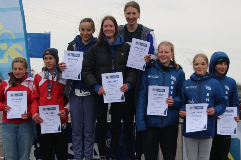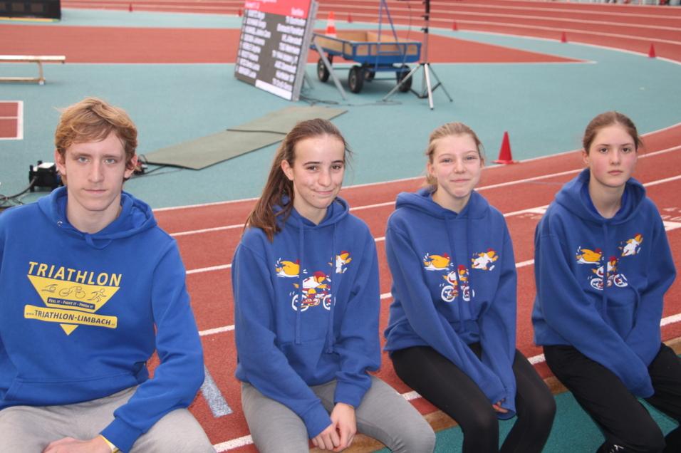 Die Rennen der B-Jugend über 2km Laufen – 12km Radfahren – 1km Laufen wurden von der anspruchsvollen kurvenreichen Radstrecke und Wind bestimmt, sodass sowohl das weibliche als auch männliche Rennen bereits auf dem Rennrad entschieden wurden. Den Anfang machten die weiblichen Athletinnen. Dicht zusammen bewältigten die gleich drei Limbacher Sportlerinnen den Auftaktlauf. Auf der Radstrecke konnten sich drei radstarke Athletinnen entscheidend absetzen, sodass Lea Borst mit Rang Vier das Maximalergebnis erlaufen konnte. Damit egalisierte sie ihr Vorjahresergebnis von den Vorjahresmeisterschaften im Duathlon und Triathlon. Kati Haas lief wenig später als gute Neunte ins Ziel. Gemeinsam mit Klara Binsteiner vom MTV Kronberg freuten sich die beiden Limbacher Sportlerinnen über die Goldmedaille in der Teamwertung. Anna Purr investierte sehr viel Kraft auf dem Rad und musste anschließend leider das Rennen vorzeitig beenden. Aber auch ihre Formentwicklung zeigt in die richtige Richtung.